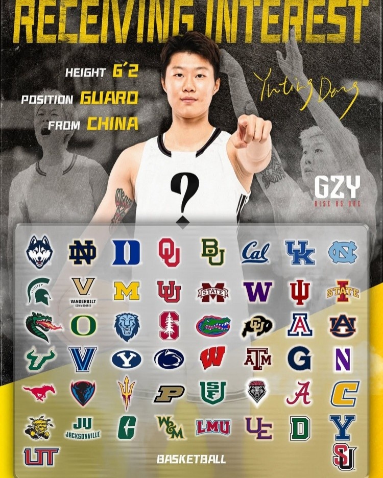 4月14日讯 此前报道,据经纪公司消息,女篮留美小将邓雨婷自3月28日进入转学窗口以来,已经收到了50所NCAA D1大学抛来的橄榄枝,其中不乏康大、圣母、杜克、贝勒、俄克拉荷马、肯塔基、阿拉巴马等篮球名校。