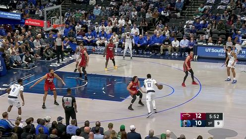 2月14日讯 NBA常规赛,独行侠主场迎战热火。独行侠29胜26负西部第8,热火25胜27负东部第8。欧文、克莱、阿德巴约本场都缺阵。上半场,双方...
