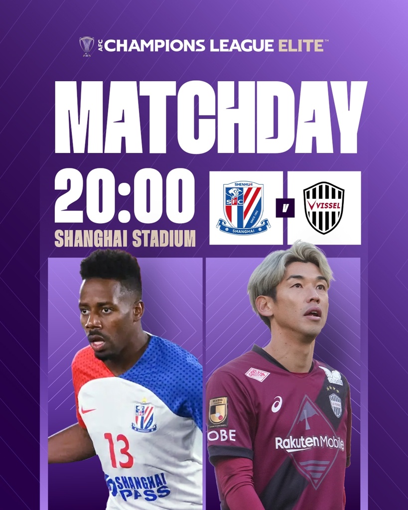 申花vs神户首发:杨皓宇、米内罗、高天意、吴曦先发,神户大轮换