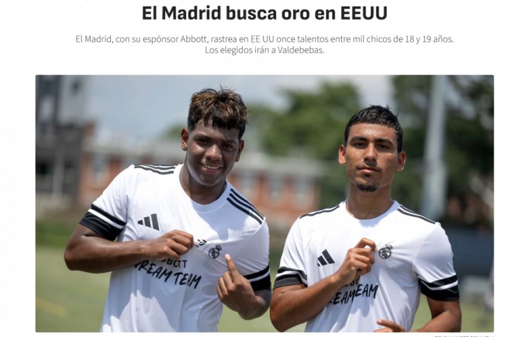 7月6日讯 据西媒《阿斯报》报道,皇马与其赞助商雅培公司将在美国从千余名18至19岁的年轻球员中选拔11位,入选者将前往巴尔德贝巴斯训练。...