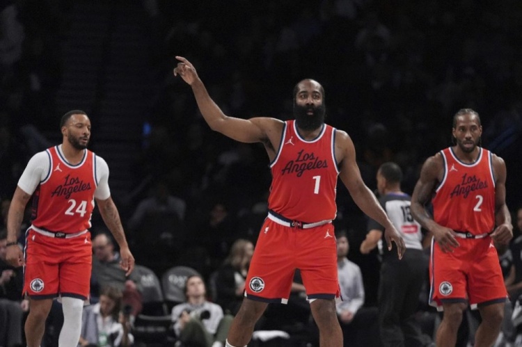詹姆斯·哈登对于球队的重要性不言而喻。已经35岁的哈登本赛季常规赛代表快船出战79场,场均出场35.3分钟,贡献22.8分5.8篮板8.7助攻。在莱昂纳德养伤期间,是哈登苦苦支撑着球队前行。