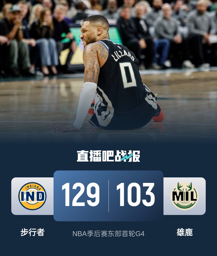 雄鹿(1-3):阿德托昆博28分15板6助、波特23分5板6助2断、波蒂斯14分3板1助、AJ-格林9分1板3助、希姆斯6分3板1助、大洛佩斯6分1板1助、特伦特6分1助2断、罗林斯5分1助、康诺顿3分2板1助、库兹马3分1助、利拉德2板2助、普林斯1板1助。