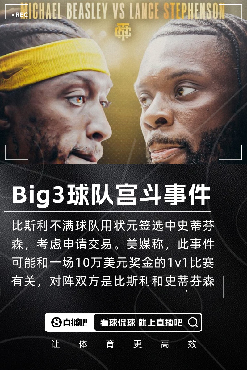 05月20日讯 据名记Chris Haynes报道,多位消息人士透露,新加入Big3联赛的迈阿密305队队员迈克尔-比斯利对球队用状元签选择兰斯-史蒂芬森感到不满,这位NBA前榜眼秀正在考虑申请交易。