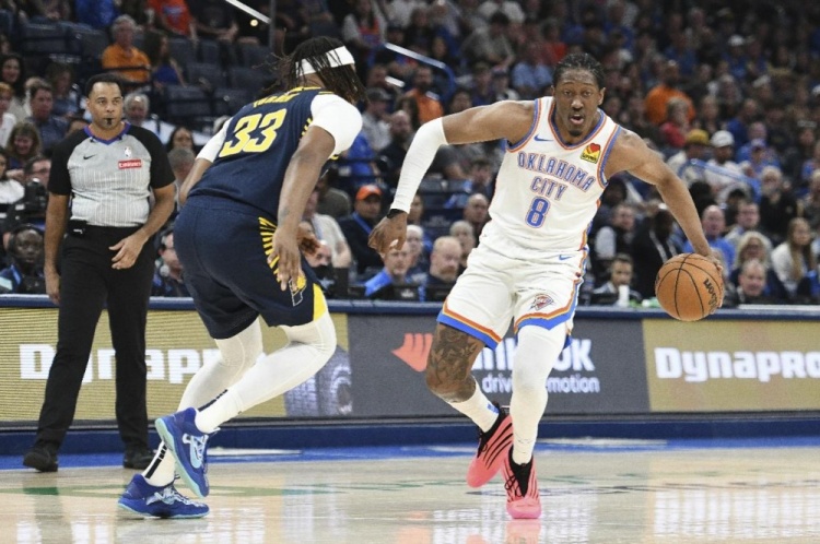 对于哈利伯顿来说,对阵雷霆将面临巨大的考验,本赛季常规赛面对雷霆的两场比赛,哈利伯顿场均仅拿到11分3篮板5.5助攻。究其原因,对位的无论是多尔特、杰伦·威廉姆斯还是卡鲁索以及卡森·华莱士,均硬度速度兼具,让哈利伯顿很不习惯。一旦哈利伯顿无从发挥,就需要更多的步行者球员挺身而出,特别是需要板凳匪徒们做出更大的贡献。