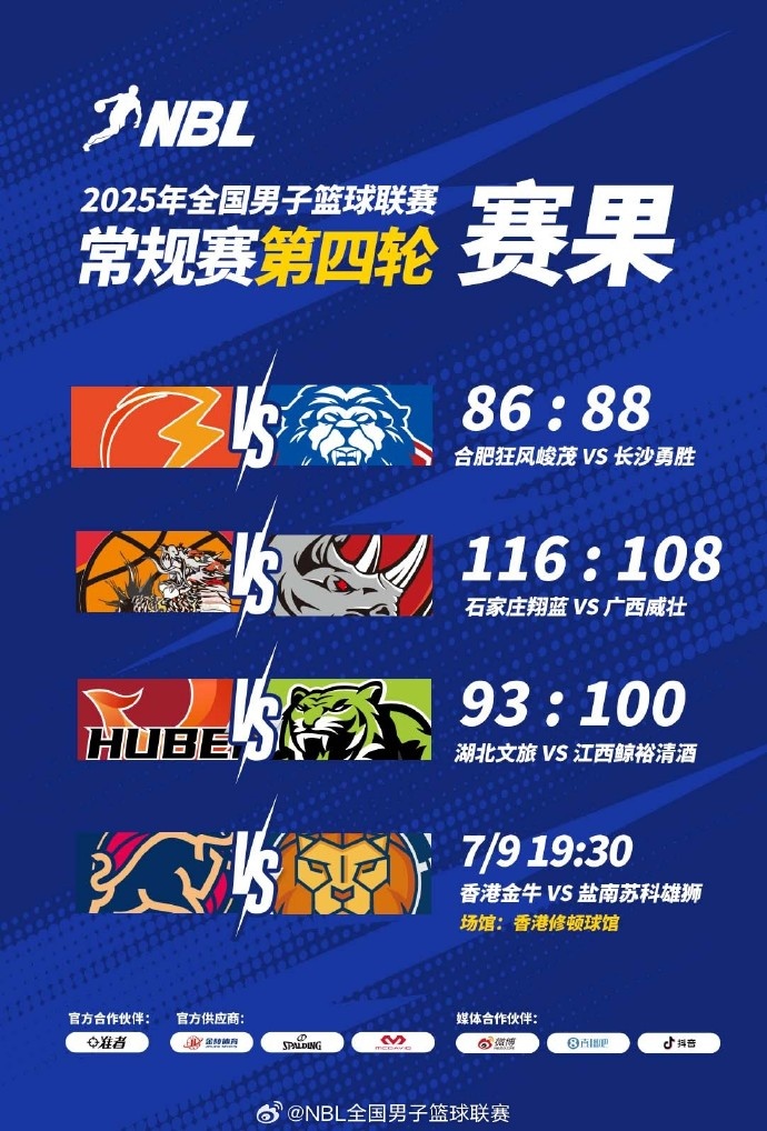 【战报】2025年NBL常规赛第四轮今日三场战罢,长沙勇胜加时鏖战胜出,广西湖北仍未尝胜绩。合肥狂风峻茂与长沙勇胜争夺激烈,战至加时最终8...