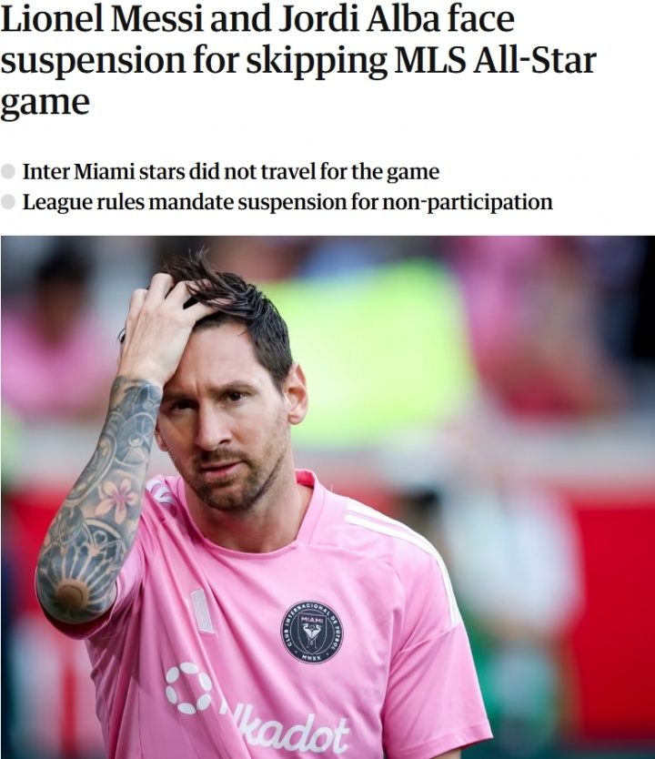07月24日讯 美职联全明星赛于北京时间今天上午9点进行,梅西和阿尔巴缺席了本场比赛的最终名单。《卫报》指出,两人将被停赛一场。梅西和...