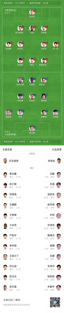 07月27日讯 北京时间今晚19点,中超第18轮,长春亚泰主场迎战大连英博,赛前双方公布首发阵容。长春亚泰首发:23-吴亚轲、2-阿不都海米提-...
