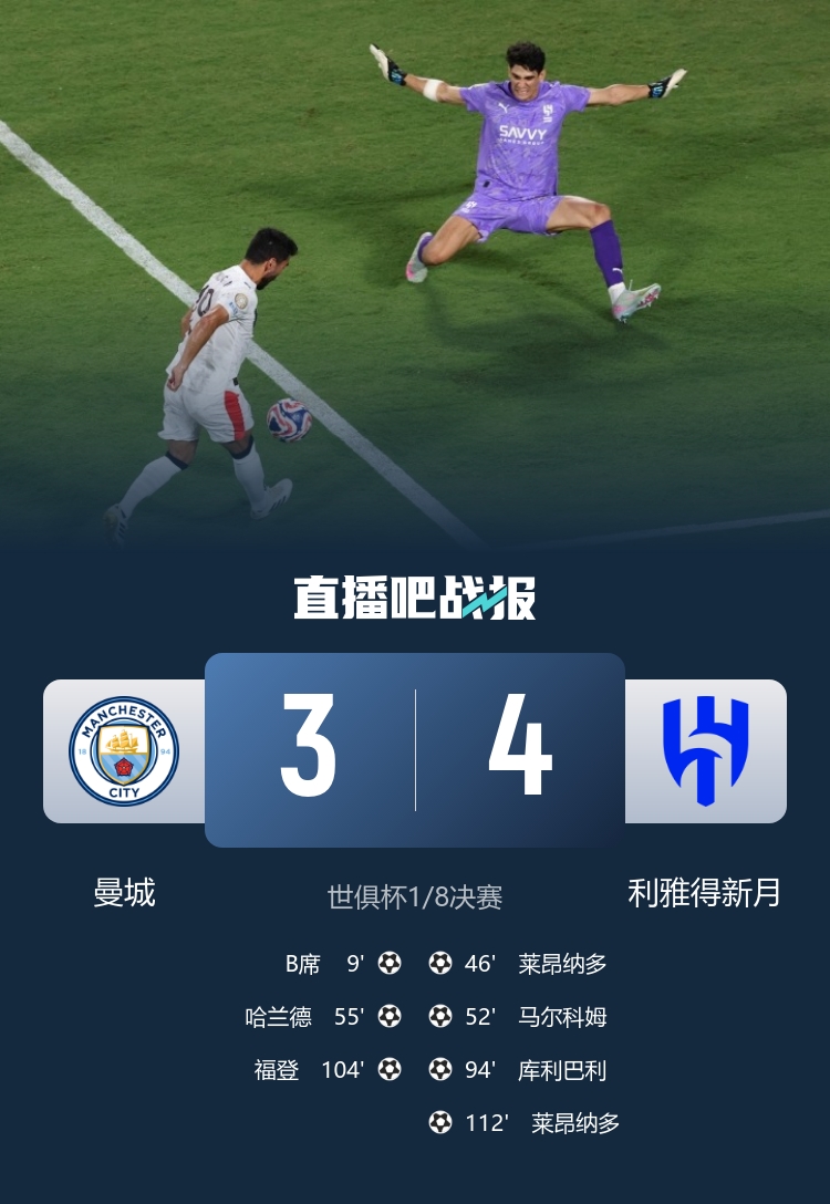 7月1日讯 世俱杯1/8决赛,利雅得新月加时4-3击败曼城,晋级8强。沙特记者Nawaf Al-Aqeel社媒发文,谈到了这场历史性胜利。社媒内容如下:...